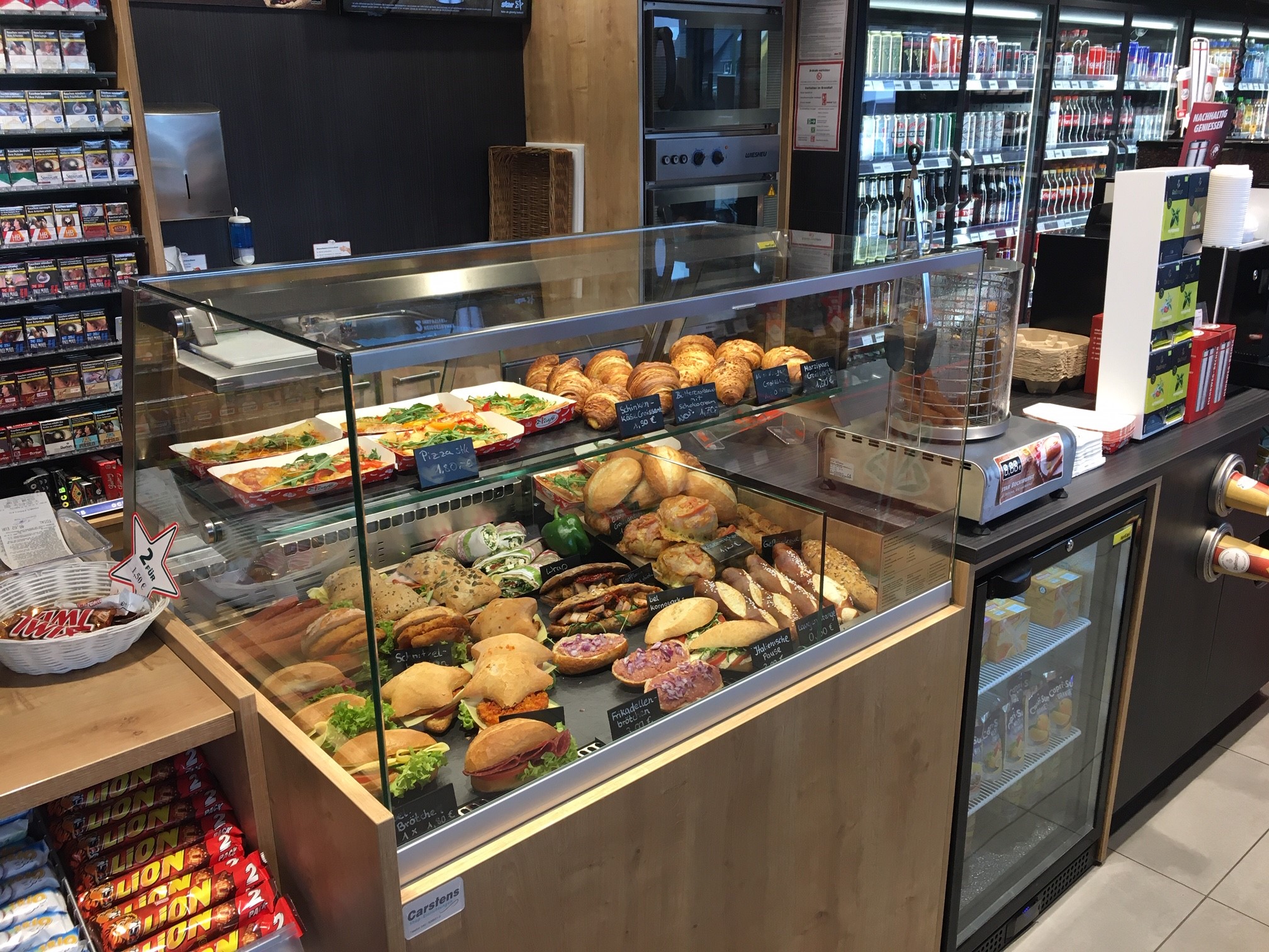 - Dienstleistungen: App-Zahlung Carwash, Backwaren, Bistro, Hermes Paketdienst, Kaffeegeschäft, Kfz Waschanlage, SB Staubsauger, TooGoodToGo