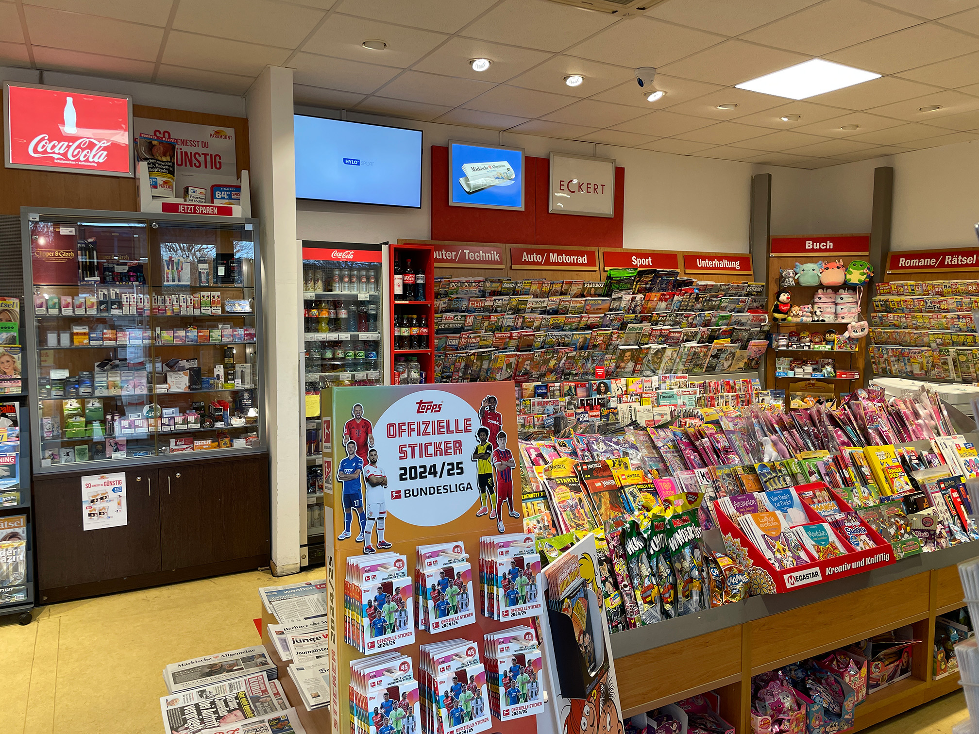 ECKERT ist das Pressefachgeschäft für Zeitungen und Zeitschriften, Bücher, Tabakwaren, Reisebedarf, Lotto/Toto. Oft mit Convenience-Produkten, Snacks, Kaffeespezialitäten und kalten Getränken. Presse und Convenience für Reisende, Pendler und das lokale Umfeld, fast überall mit der größten Presseauswahl am Ort. Außergewöhnliche Öffnungszeiten, auch an Sonn- und Feiertagen.