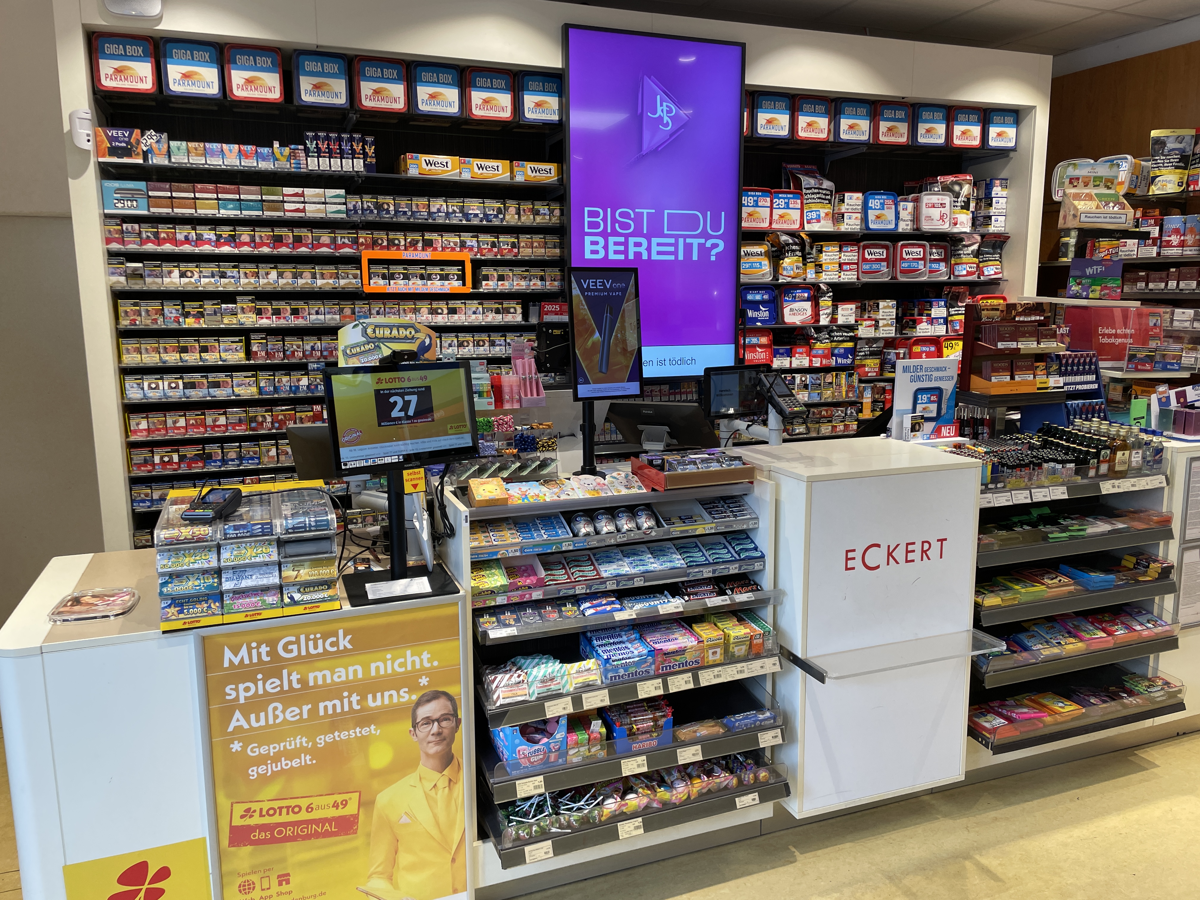 - Tags: Zigaretten, Zigarren, Tabak, Cannabisprodukte, E-Zigarette, E-Liquid, Heat- No- Burn-Produkte, Buch, Reisebedarf, Geschenkartikel, Papier-Büro und Schreibwaren, Alkohol, alkoholfreie Getränke, Süßwaren, Presse, Fahrkarten