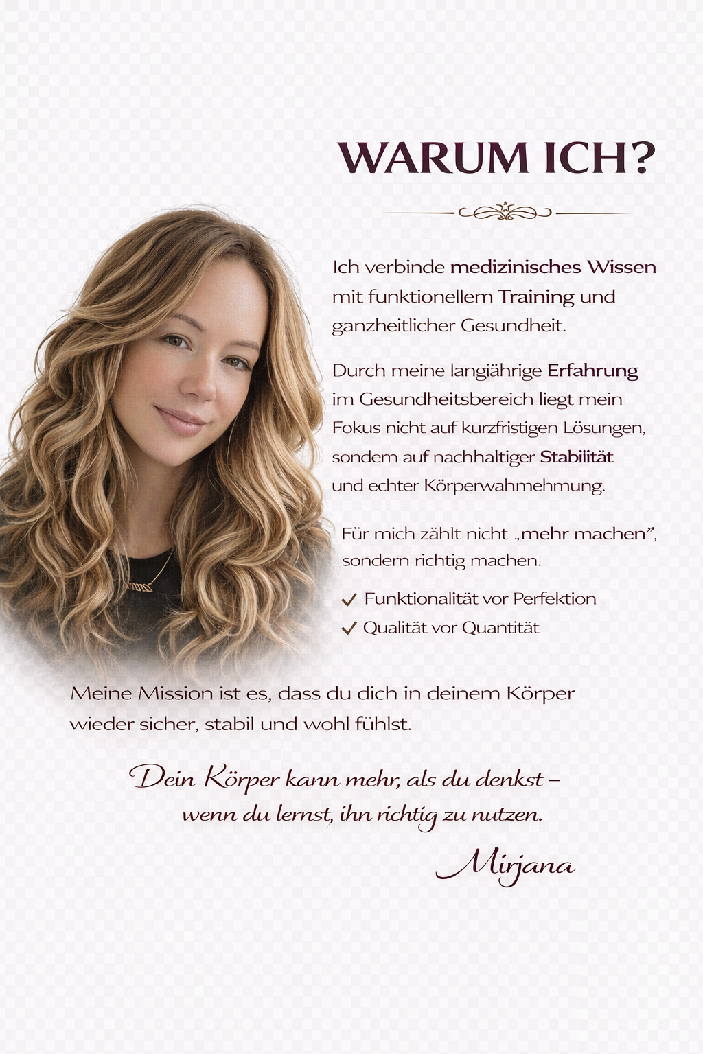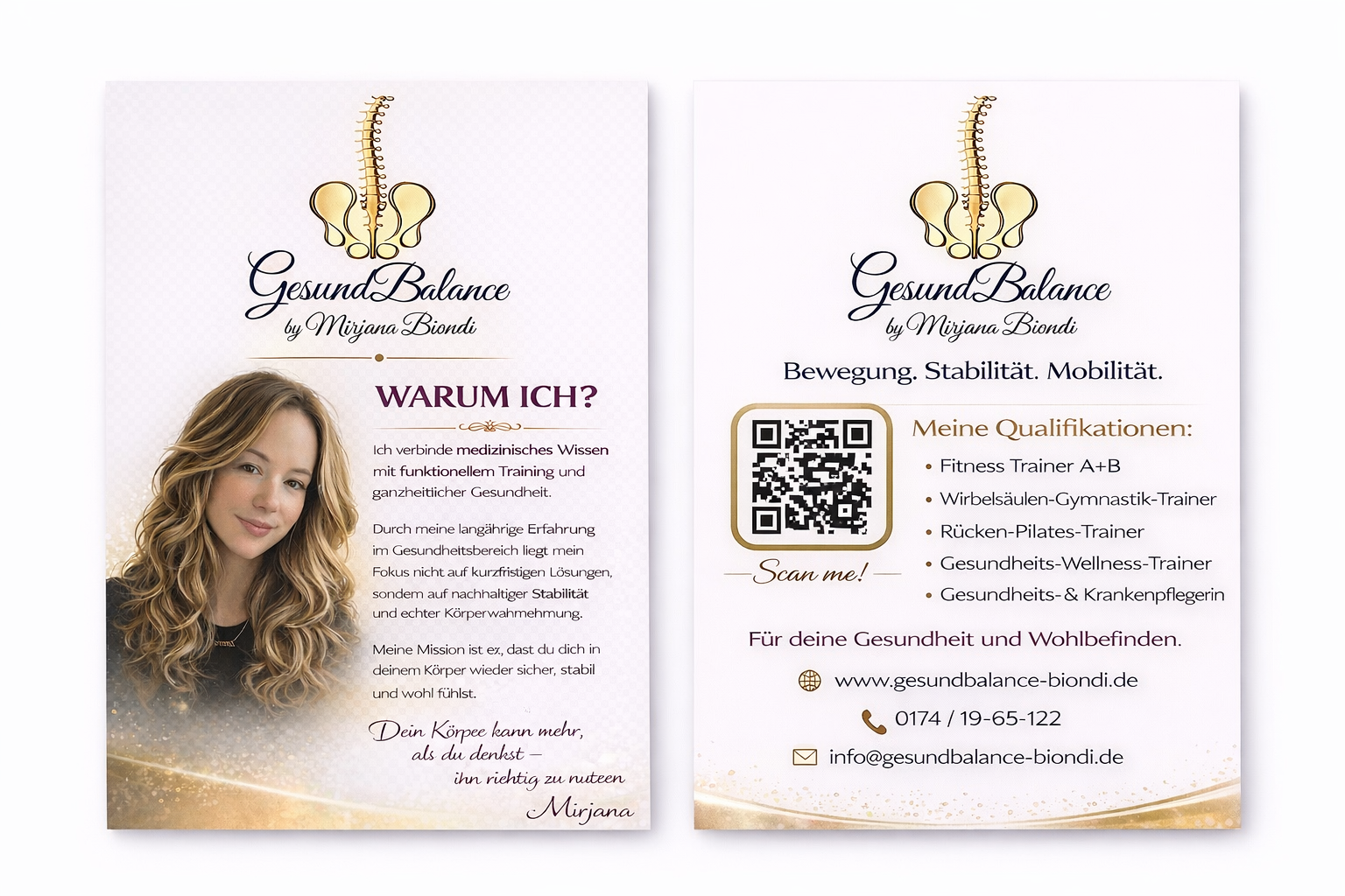 GesundBalance by Mirjana Biondi Bei GesundBalance by Mirjana Biondi steht dein Wohlbefinden im Mittelpunkt. Ich begleite dich auf deinem Weg zu mehr Gesundheit, innerer Balance und Lebensqualität – ganz individuell und auf dich abgestimmt. Mein Angebot richtet sich an Menschen, die Körper, Geist und Seele in Einklang bringen möchten. Mit ganzheitlichen Ansätzen unterstütze ich dich dabei, gesunde Gewohnheiten zu entwickeln, Stress zu reduzieren und deine persönliche Balance zu finden. Ob Ernährungsberatung, Coaching oder individuelle Gesundheitskonzepte – bei mir erhältst du persönliche Betreuung in einer vertrauensvollen und wertschätzenden Atmosphäre. Starte jetzt deinen Weg zu mehr Energie, Ausgeglichenheit und Lebensfreude.