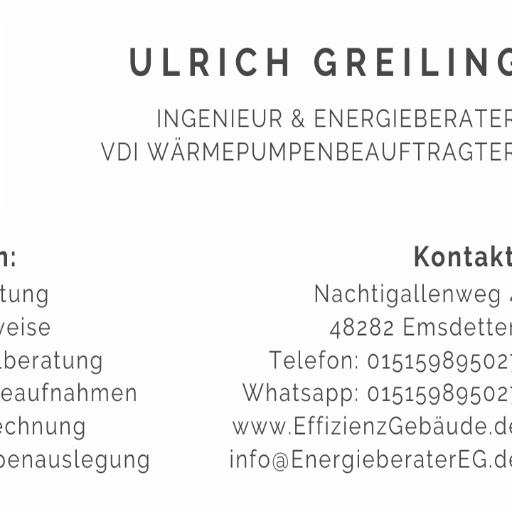Adresse Ulrich Dipl.Ing. Greiling-Energieberater und Ingenieurbüro Effizienzgebäude GmbH in Emsdetten