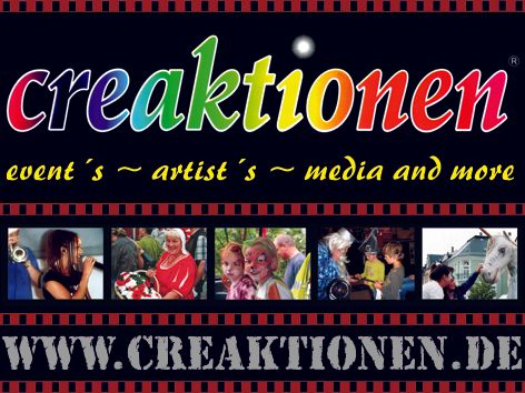 Das büro creaktionen® ist ein Dienstleistungsunternehmen in der Unterhaltungsbranche. Wir sind Eventplaner – Event- und Programmproduzenten - Eventmanager und befassen uns auch als Künstleragentur und Kulturberatung mit Veranstaltungsdienstleistungen im kompletten Spektrum. Dazu gehören auch alle medialen Kompetenzen und Leistungen, ob techn. Planung und Umsetzung, Video- und Tonproduktion und natürlich Grafik- und kreative/informative Textarbeiten. Unser Name ist als Marke geschützt und die Kombination aus creativ und Aktionen soll verdeutlichen das wir ideenreich handeln, aber bei allen Ideen auf Umsetzbarkeit im jeweiligen Rahmen achten.