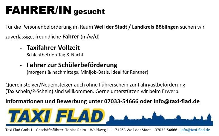 Adresse Flad Taxi in Weil der Stadt