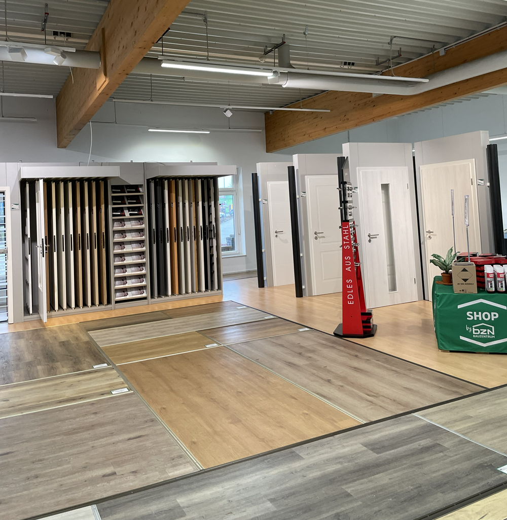 - Produkte: Fenster, Türen, Fliesen und Sanitär, Holz