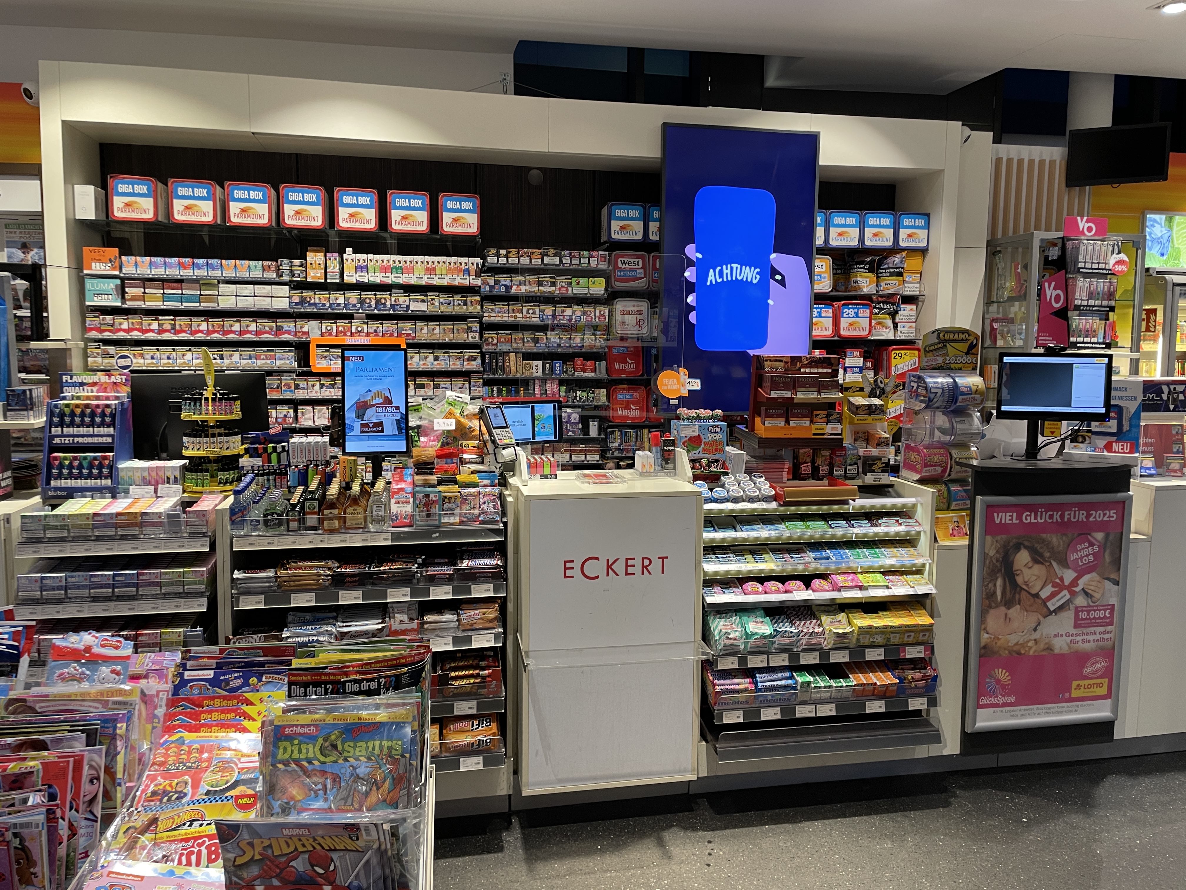 - Tags: Zigaretten, Zigarren, Tabak, Cannabisprodukte, E-Zigarette, E-Liquid, Heat- No- Burn-Produkte, Buch, Reisebedarf, Geschenkartikel, Papier-Büro und Schreibwaren, Alkohol, alkoholfreie Getränke, Süßwaren, Presse, Fahrkarten