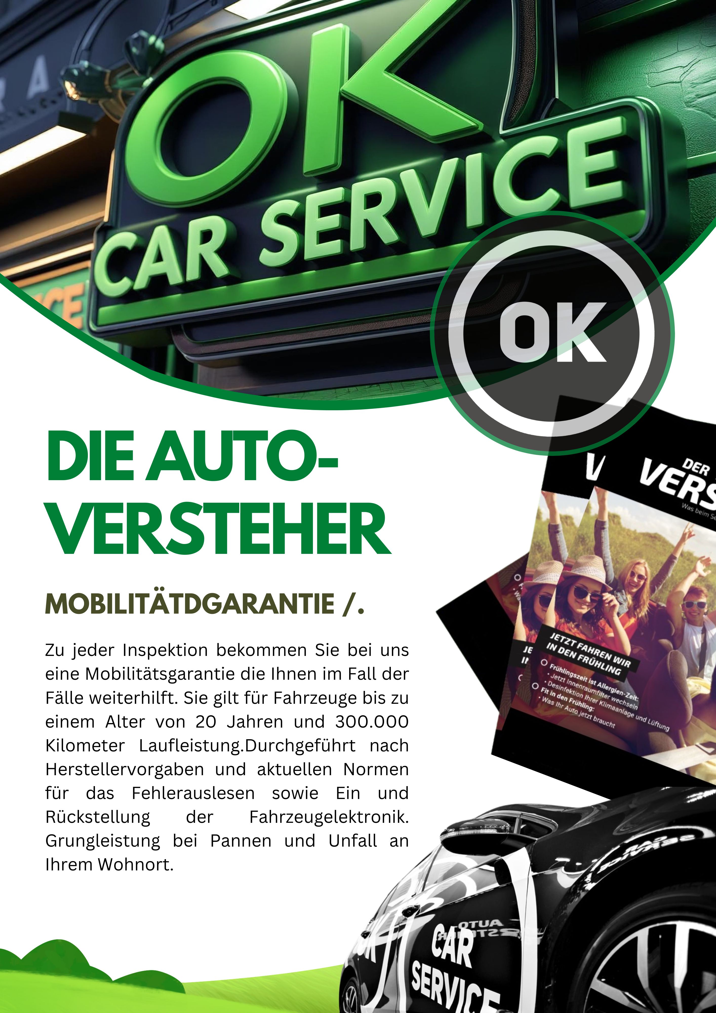 CAR SERVICE WERKSTÄTTEN sind keine Ketten oder unter Verkaufsdruck stehende Discounter, sondern selbstständige, Inhabergeführte, zertifizierte Meisterbetrieb, die auch die Kfz-technik von Morgen warten und reparieren können und die hohen Anforderungen von OK CAR SERVICE entsprechen. Technik Informationen, Vollsortiment an Ersatz-und Verschleißteilen, Hersteller Originalteile, Werkstattausrüstung, Elektrowerkzeug , Spezialwerk-zeug, Technik-Hotline EDV / Software Schulungen, Seminaren, Weiterbildung. Immer auf dem neusten Stand.