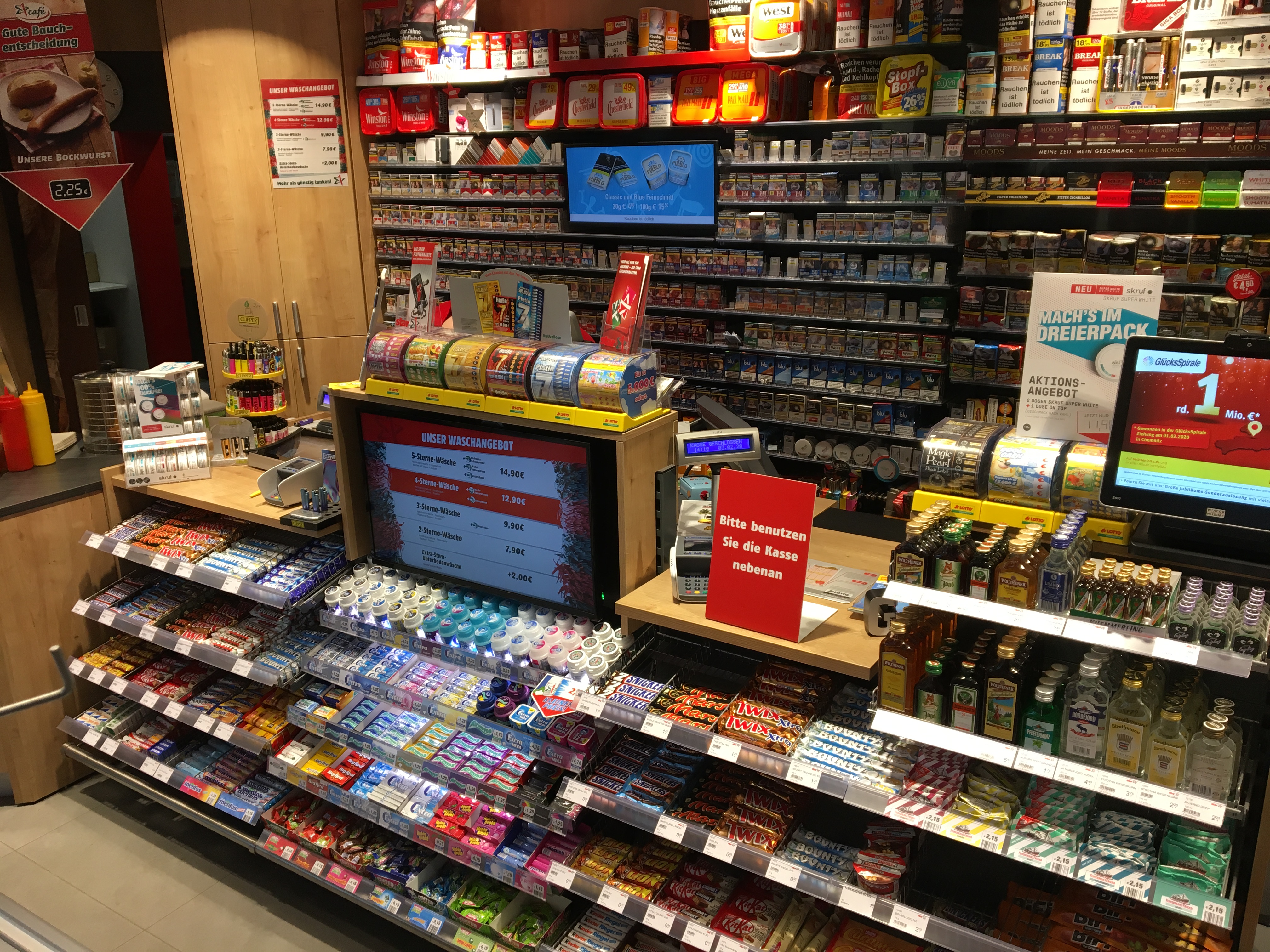 - Dienstleistungen: App-Zahlung Carwash, Backwaren, Bistro, Kaffeegeschäft, Kfz Waschanlage, LKW Diesel, Lotto, LPG, SB Staubsauger, TooGoodToGo