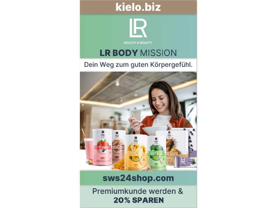 - Tags: LR, KIELO.BIZ, ONLINESHOP, PARFÜM, ALOE VERA, SWS, KIEL, OSTSEE, BUSINESS, CBD, SILL, ABNEHMEN, MAKEUP, BEAUTY, HEALTH, MEHREINKOMMEN, AUTOKONZEPT, PARTNER WERDEN, PREMIUMKUNDE, GESUNDHEIT, FREIE ZEITEINTEILUNG, NAHRUNGSERGÄNZUNG, NUTRITION, KÖRPERPFLEGE, DUFT, PARFUM, GESICHTSPFLEGE, ANTIAGING, MÄNNERDUFT, FRAUENDUFT, MICROSILVER, Darmstoffwechsel, Leberstoffwechsel, Zellstoffwechsel, 5in1 Beauty Elixir, 5in1 Men's Shot, TRUE BEAUTY, Make-up, Aloe Drinking Gele, Cannaloe, Cistus Incanus, Colostrum, Fiber Boost, Freedom Active Kapseln, Leber Support, Mind Master, Mind Master Extreme, Night Master, PRO 12, Pro Balance, Protein, Reishi Plus, Super Omega, Vita Active, Woman Phyto, Figuactive, Shake, Almond Snack Bar, Berry Snack Bar, Crusty Ruspberry Flakes, Fruity Strawberry Shake, Juicy Tomato Soup, Lovely Coffee Shake, Smooth Cocoa Shake, Soft Vanilla Shake, Spicy Curry Soup, Sweet Potato Soup, Tasty Caramel Shake, Yummy Veggie Soup, Kräuter Fastentee, Herz & Kreislauf, Hormonhaushalt, Immunsystem, Knochen, Gelenke & Muskeln, Leistung werde, Energie & Erholung, Nährstoffversorgung, Schönheit von Innen, Verdauung, LR ZEITGARD PRO, L-RECAPIN, Blue Light Defender, Racine, Serox, Platinum, Nano Gold, Beauty Diamonds, LR CLASSICS, BRUCE WILLIS, GUIDO MARIA KRETSCHMER, LR MEETS SANSIBAR, Metropolitan Man, Ocean Sky, Terminator, Beautyqueen, Femme Noblesse, Harem, Lightning Collection, Rrockin Romance, Shine by Day, Shine by Night