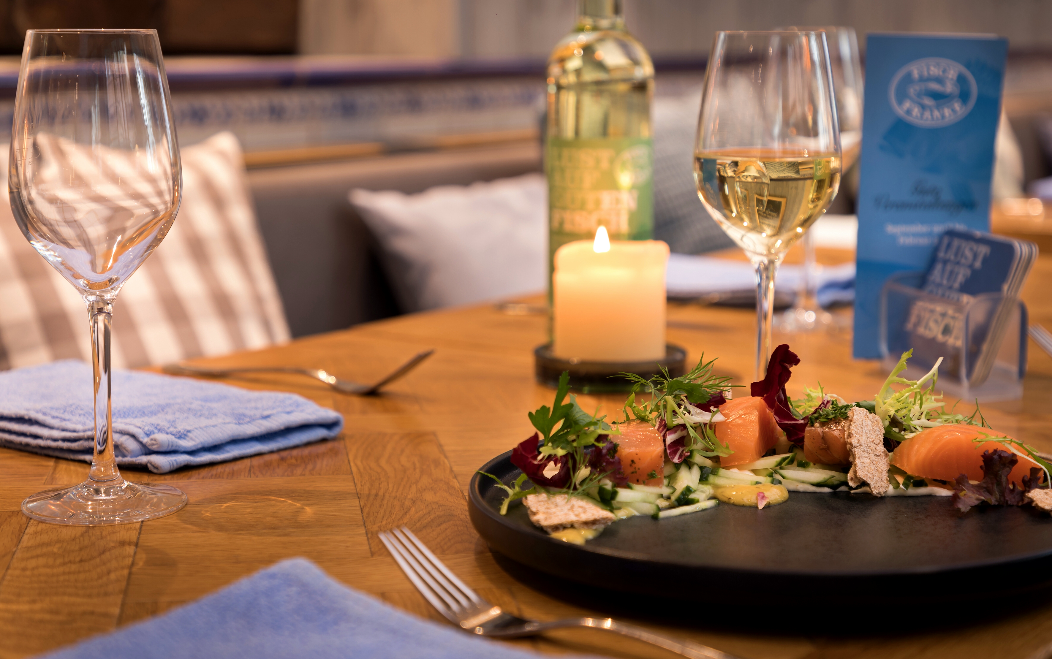 Über 100 Jahre #mitmutvoran LUST AUF GUT macht MUT. Wann hatten Sie zuletzt MUT? Was macht Ihnen MUT? Denn GUTe Beispiele machen doch MUT. MUT zur Leidenschaft, zum Aufbruch, zur Kreativität, zum Miteinander und MUT zum Neudenken. Mit dem Fisch Franke begründete Metzger Moritz Franke 1920 MUTig einen Ort der Gastlichkeit für Fisch und Meeresfrüchte im Herzen Frankfurts, der von Ihnen für die Gegenwart und Zukunft MUTig entdeckt werden kann. Begleiten Sie uns mit diesem Speisekarten-Magazin auf einem Kulinarischen Segeltörn. Mit an Bord die besten Gerichte von Austern, Kabeljau, Seezunge & Co - für eine GUTe Meeresfrische Brise in Frankfurt. Für das Fisch Franke-Team Gregor Engels