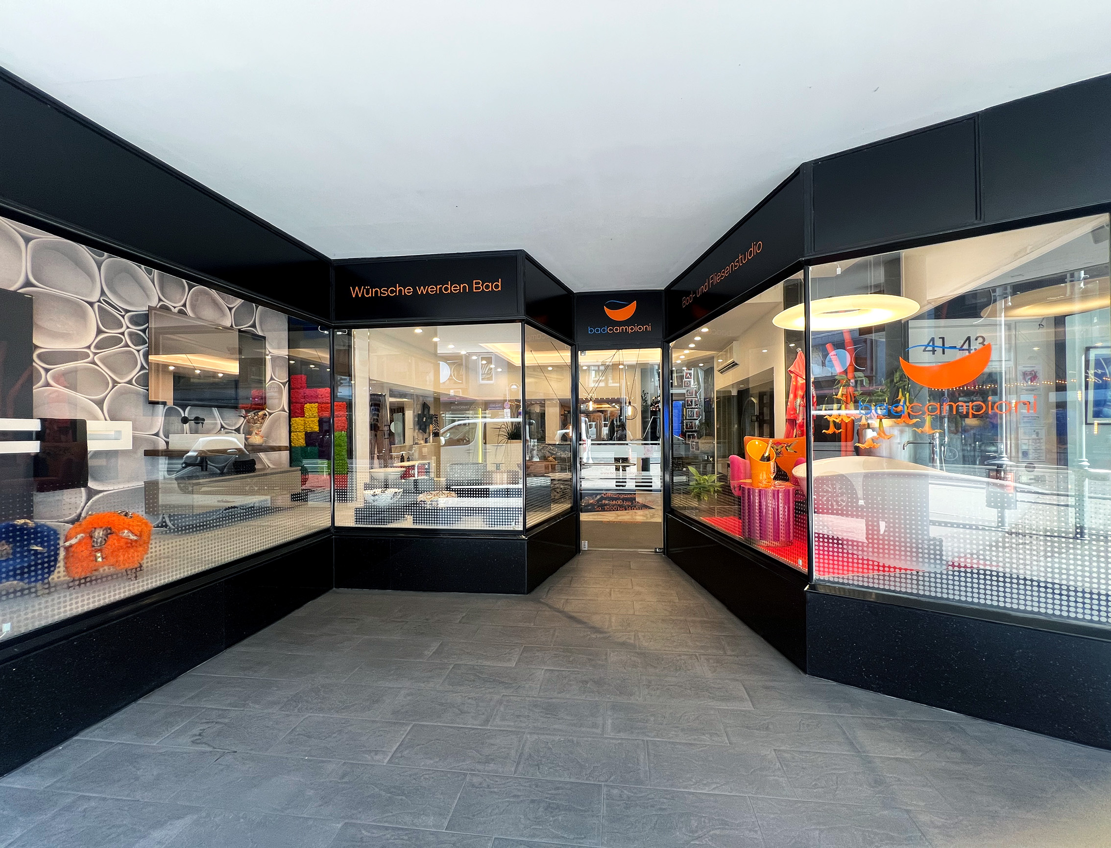 "„bad campioni“ – BAD UND FLIESENSTUDIO In unsere Ausstellungen finden Sie moderne Bäder und Fliesen. Moderne Bäder leben von ihrer Gestaltung. Wir sind Ihr Partner für die Modernisierung oder den Neubau Ihres Badezimmers. Wir bieten ihnen die komplette Badsanierung / Badrenovierung aus einer Hand. Dabei bieten wir Ihnen Komplettlösungen, angefangen vom Waschtisch über die Badewanne bis hin zu Brausen und Co. Moderne Bäder werden erst durch die passenden Fliesen komplett. Deshalb finden Sie in unsere Ausstellung, neben dem Badbedarf, auch viele individuelle Wandfliesen und robuste Bodenfliesen. Wir planen Ihr Bad, wie wir auch unser persönliches Bad planen würde!"