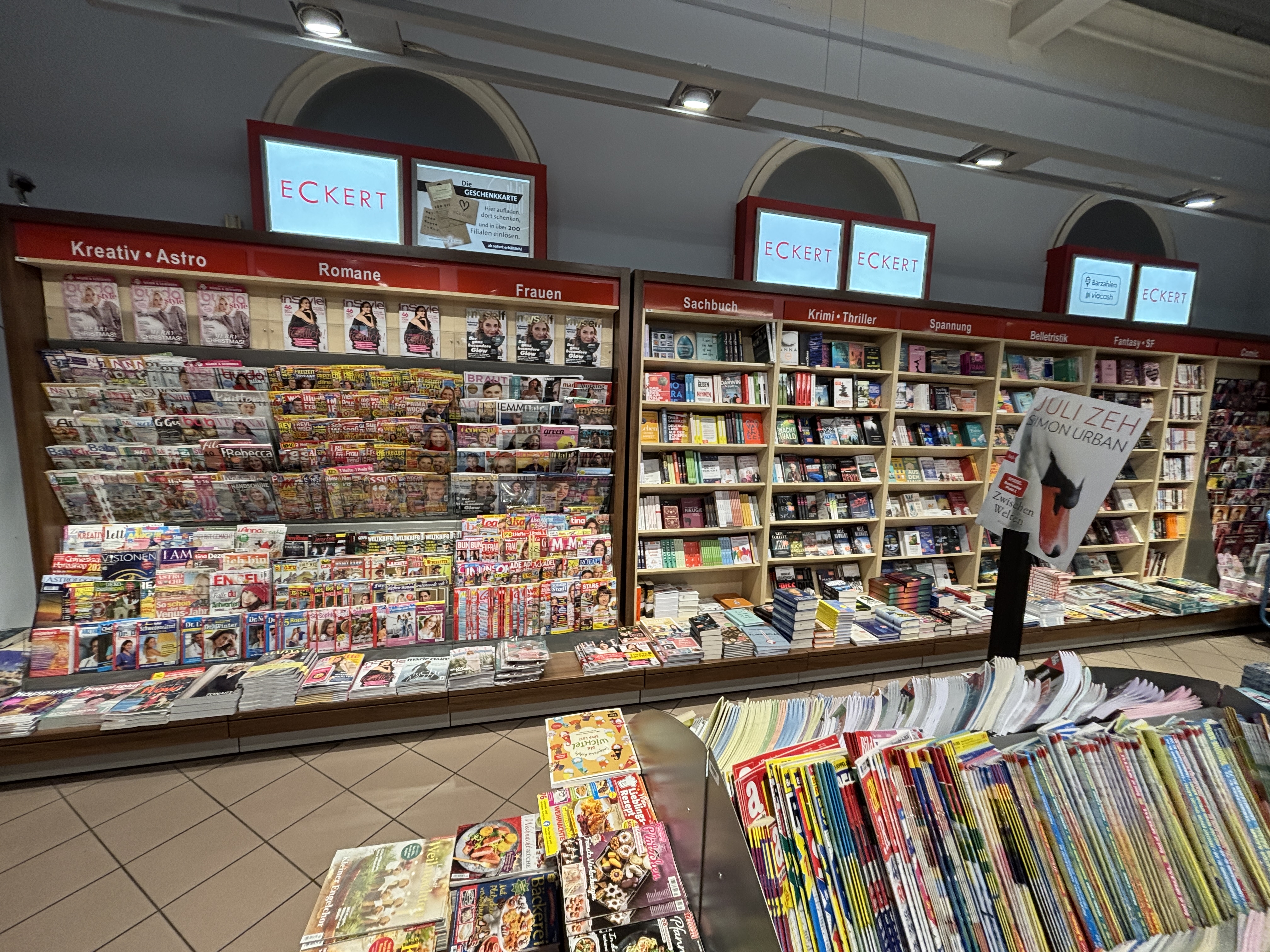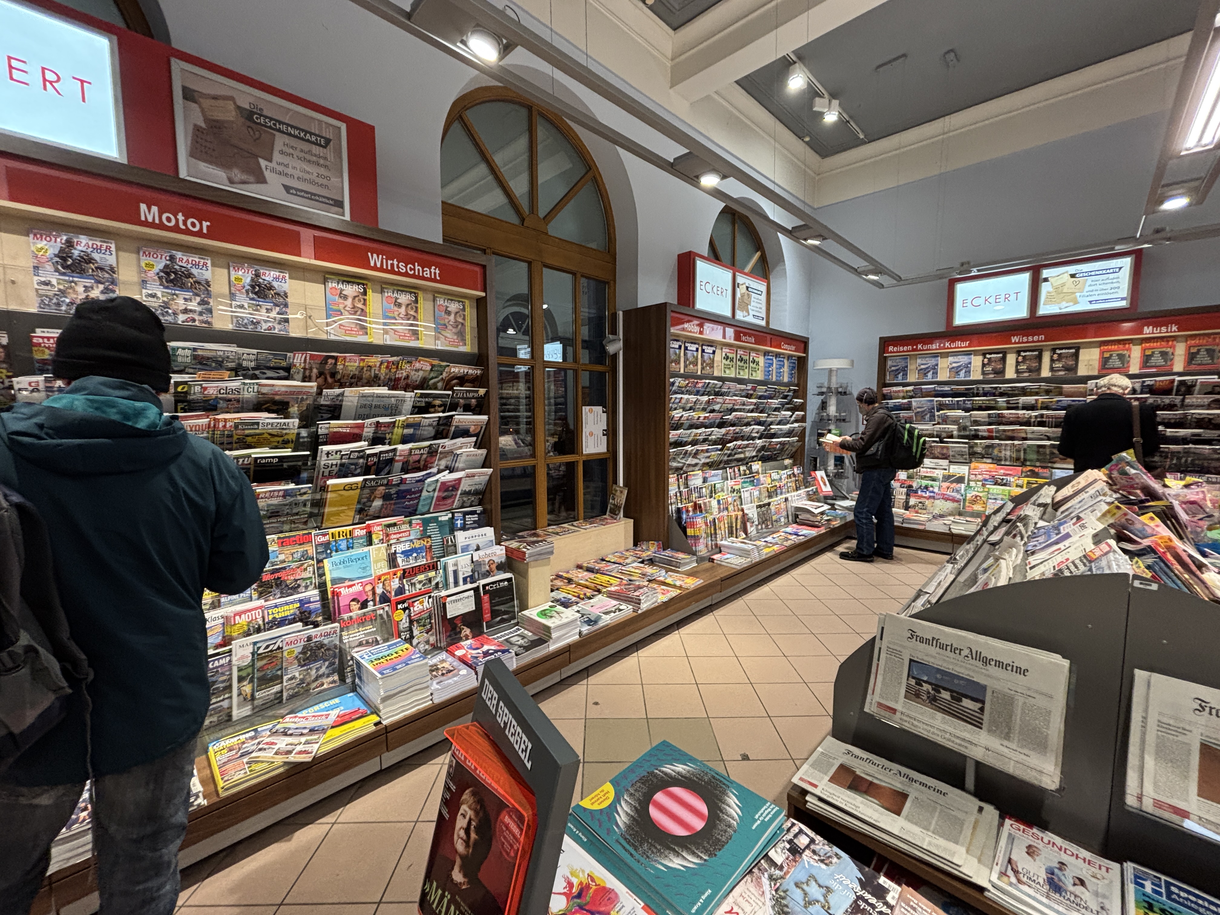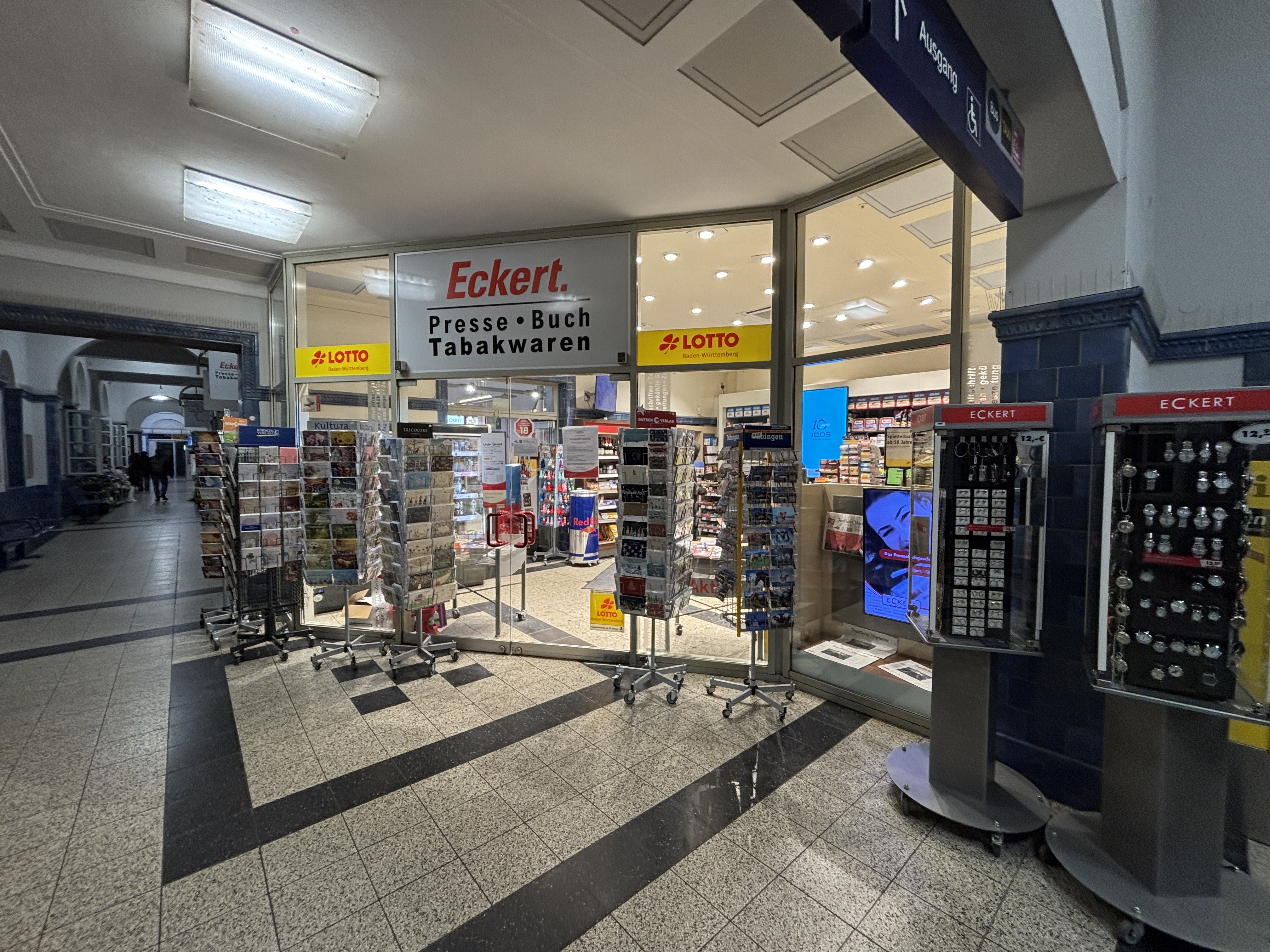 ECKERT ist das Pressefachgeschäft für Zeitungen und Zeitschriften, Bücher, Tabakwaren, Reisebedarf, Lotto/Toto. Oft mit Convenience-Produkten, Snacks, Kaffeespezialitäten und kalten Getränken. Presse und Convenience für Reisende, Pendler und das lokale Umfeld, fast überall mit der größten Presseauswahl am Ort. Außergewöhnliche Öffnungszeiten, auch an Sonn- und Feiertagen.