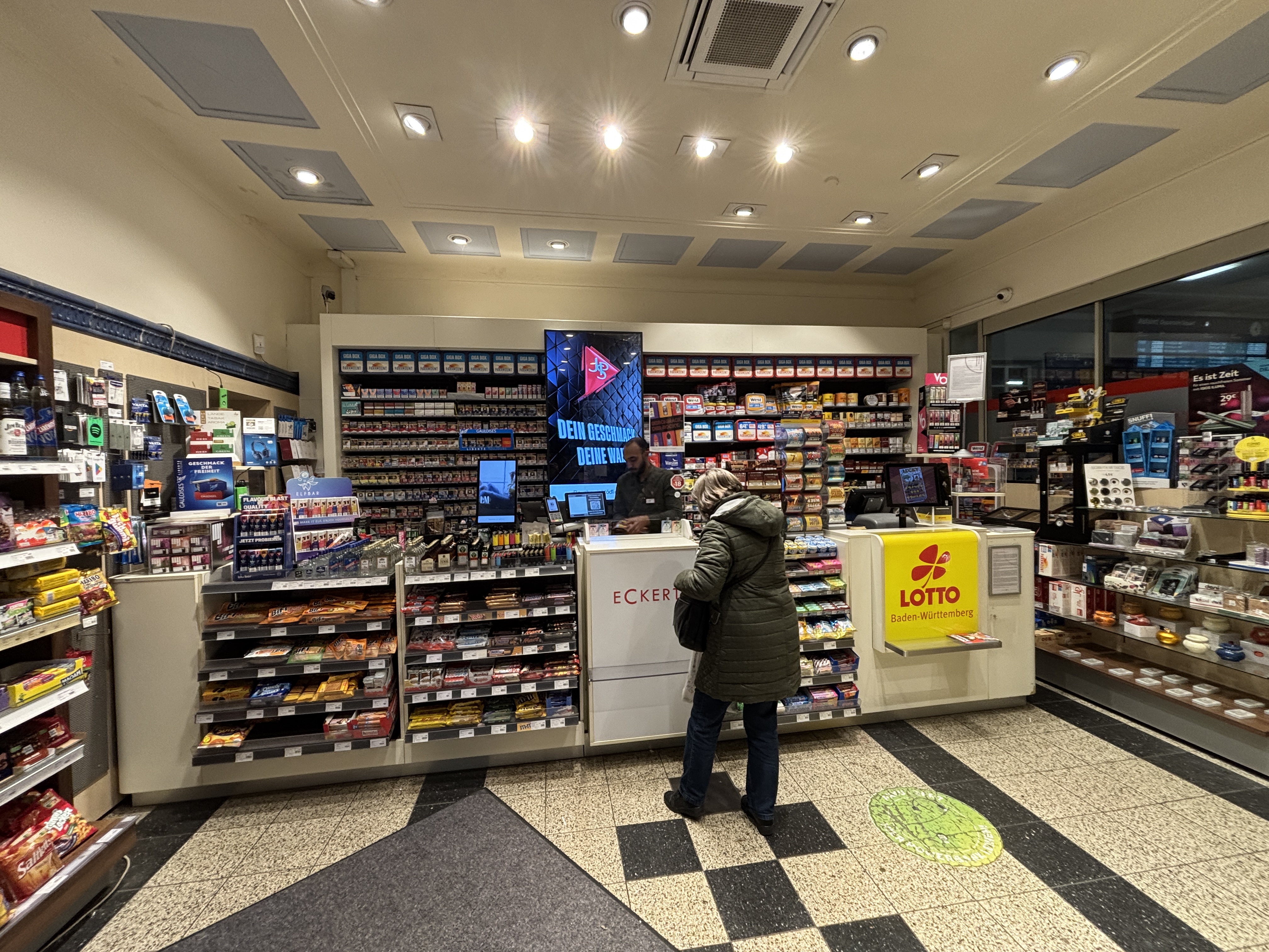 - Tags: Zigaretten, Zigarren, Tabak, Cannabisprodukte, E-Zigarette, E-Liquid, Heat- No- Burn-Produkte, Buch, Reisebedarf, Geschenkartikel, Papier-Büro und Schreibwaren, Alkohol, alkoholfreie Getränke, Süßwaren, Presse, Fahrkarten