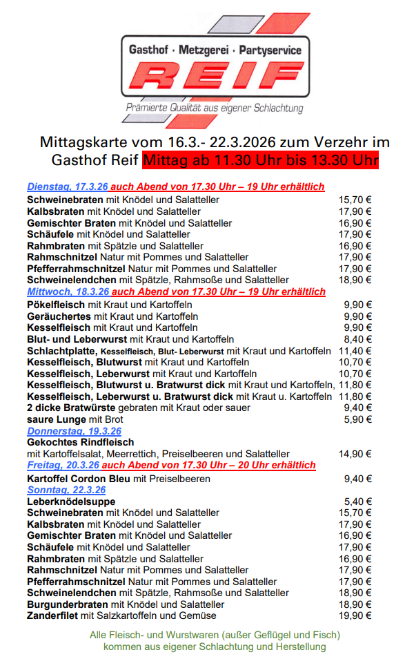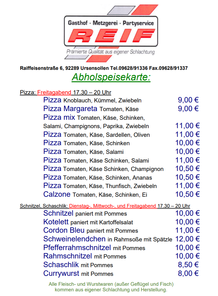 - Emails: info@gasthof-metzgerei-reif.de