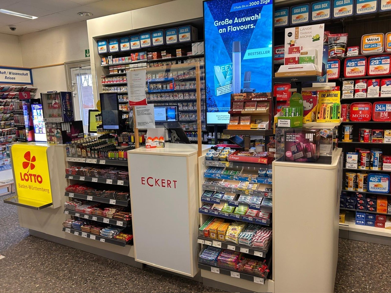 - Tags: Zigaretten, Zigarren, Tabak, Cannabisprodukte, E-Zigarette, E-Liquid, Heat- No- Burn-Produkte, Buch, Reisebedarf, Geschenkartikel, Papier-Büro und Schreibwaren, Alkohol, alkoholfreie Getränke, Süßwaren, Presse