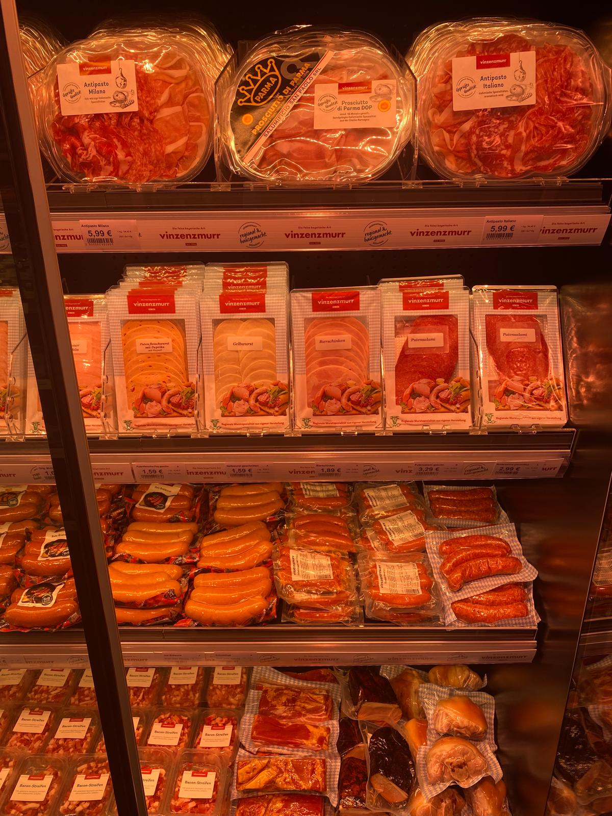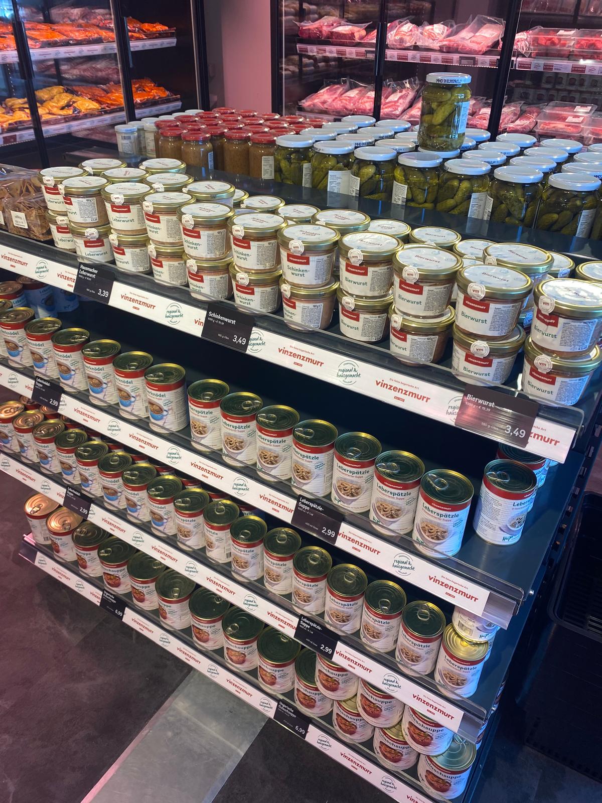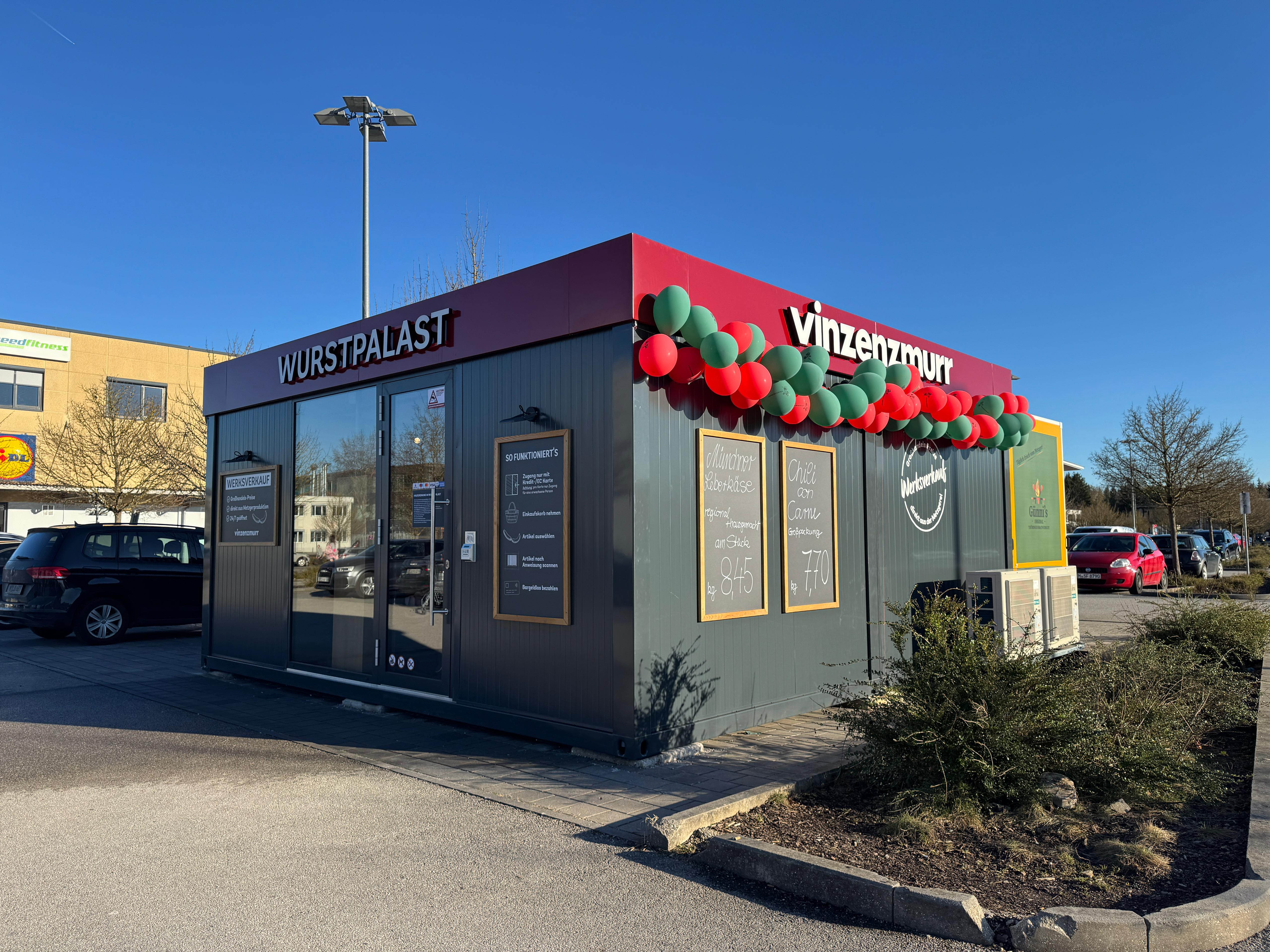 Der Vinzenzmurr Wurstpalast Smartstore steht auf dem Industrieparkplatz von Brunnthal und hat 24/7 geöffnet. Es erwarten Sie Fleisch- und Wurstspezialitäten zu Großhandelspreisen sowie unser Convenience- und ein großes SB-Sortiment. Das Shopsystem ist super einfach, Sie kommen per EC Karte in den Verkaufsraum und dort wählen Sie Ihre Ware aus anschließend zur Kasse gehen, abscannen und bezahlen.
