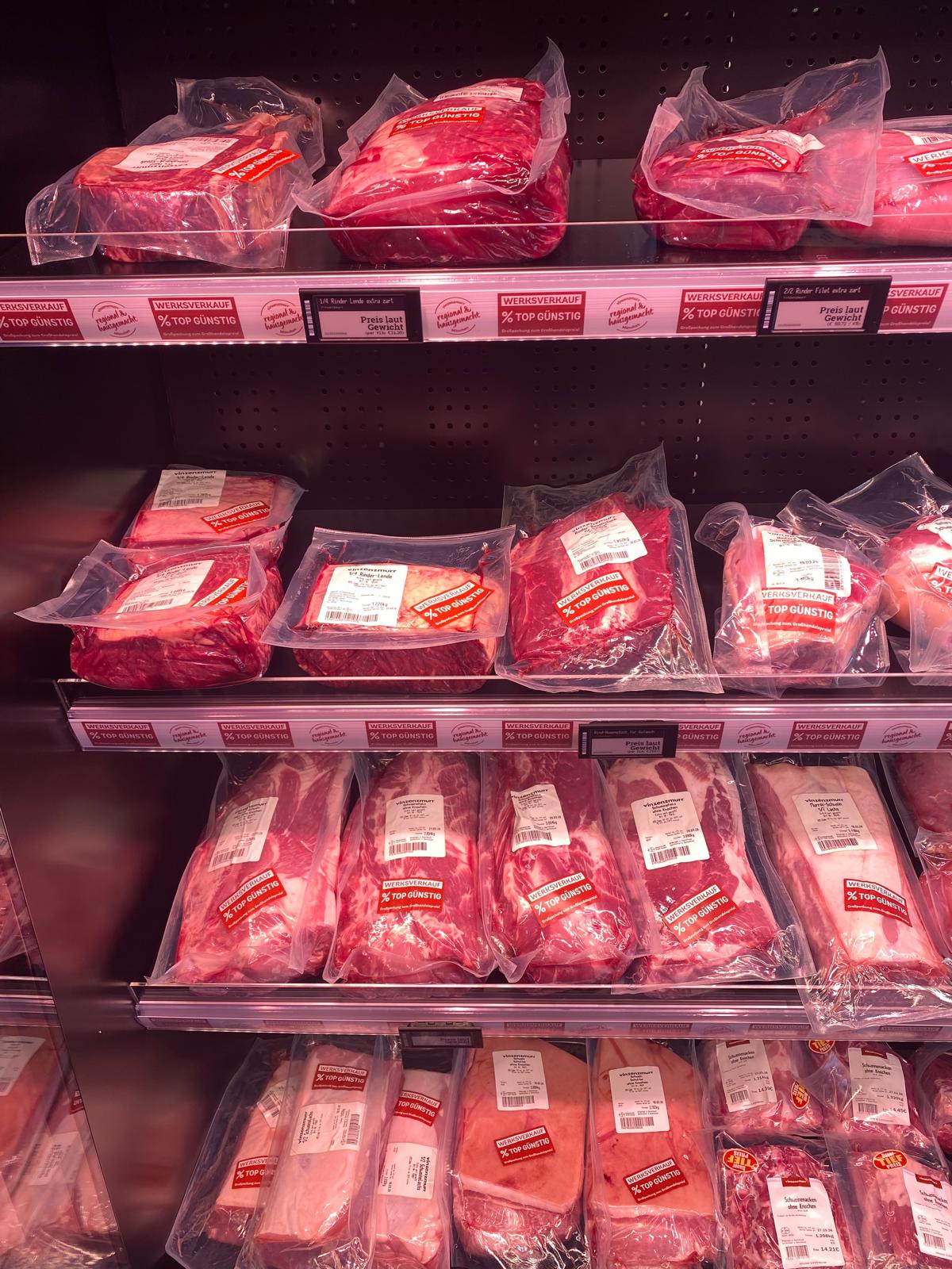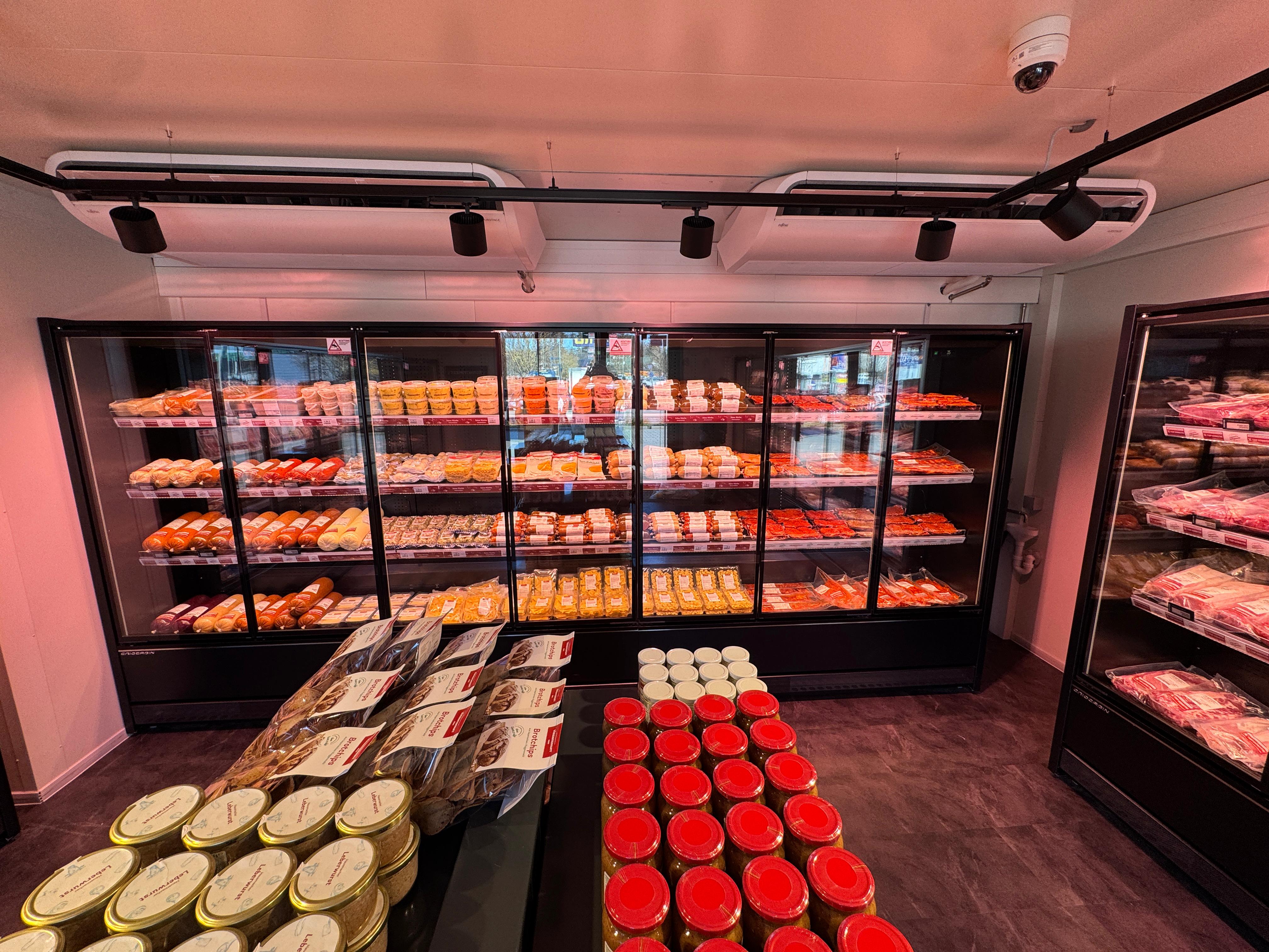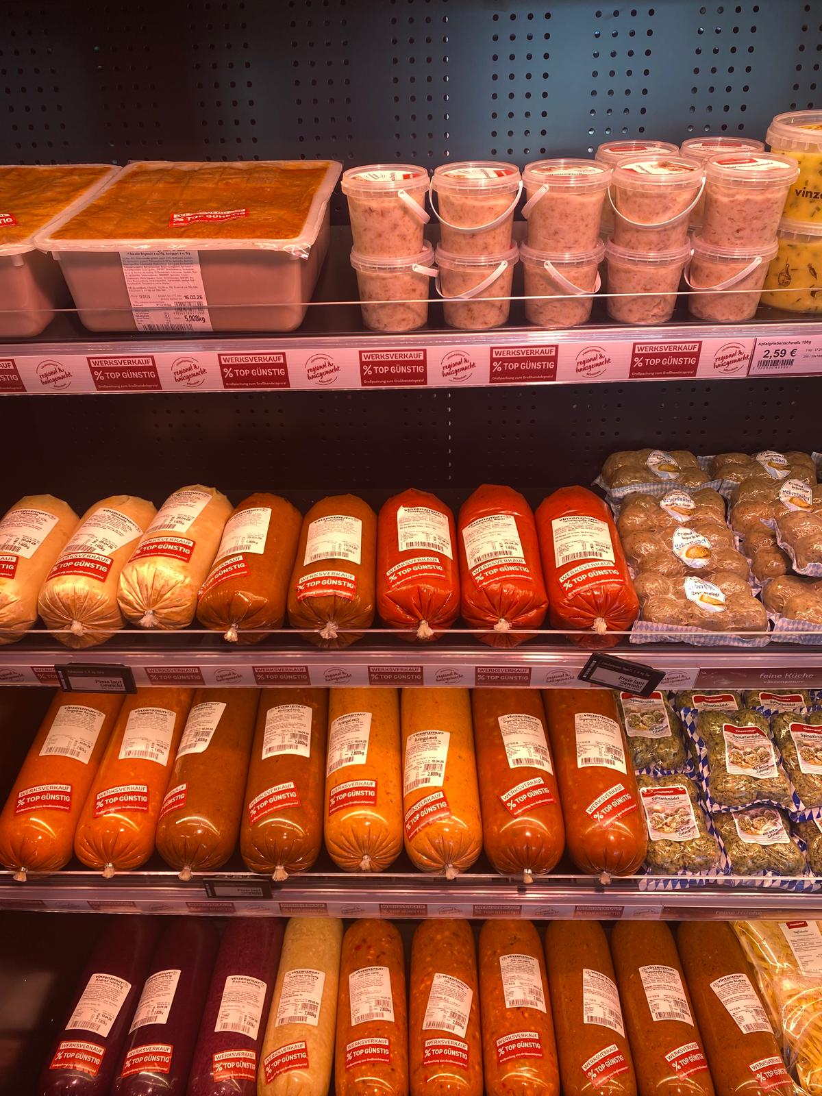 Der Vinzenzmurr Wurstpalast Smartstore steht auf dem Industrieparkplatz von Brunnthal und hat 24/7 geöffnet. Es erwarten Sie Fleisch- und Wurstspezialitäten zu Großhandelspreisen sowie unser Convenience- und ein großes SB-Sortiment. Das Shopsystem ist super einfach, Sie kommen per EC Karte in den Verkaufsraum und dort wählen Sie Ihre Ware aus anschließend zur Kasse gehen, abscannen und bezahlen.